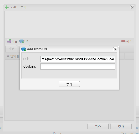 스크롤을 내리면 Torrent Address detection이라는 항목이 있습니다. Activate를 누르면 파란색 마그넷 링크를 제공합니다. 파란색 링크를 우클릭하고 '링크 주소 복사'를 누릅니다. ipleak.net 사이트는 계속 닫지 말아야 합니다. Deluge로 돌아와서 토런트 추가를 누르고, Url을 누릅니다. Url 항목에 방금 복사한 마그넷 링크를 추가하고 다운로드 합니다.