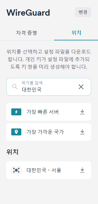 VPN 서버가 위치한 국가의 이름을 적습니다. 한국 서버를 골랐다면 korea를 적어주면 되겠죠. 이제 VPN 설정은 끝났습니다.