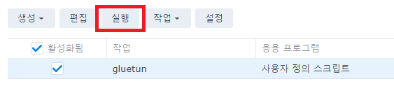 생성한 작업을 선택하고 실행합니다. 이제 시놀로지가 부팅될 때마다 해당 스크립트가 실행됩니다.
