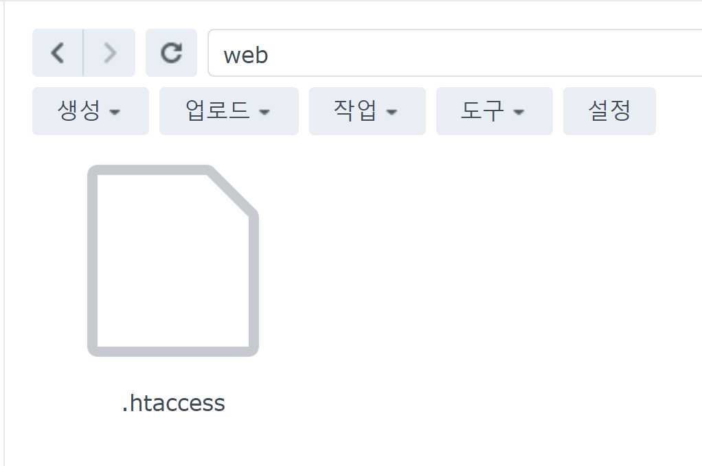 다시 시놀로지 DSM 웹페이지로 돌아갑시다. Web Station이 정상적으로 설치됐다면 나스 최상위 디렉토리에 'web' 폴더가 생성되어 있을 겁니다. 그곳에 아까 만든 파일을 집어넣어 줍니다.