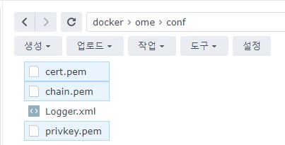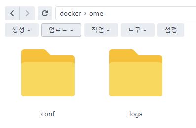 파일 스테이션에 들어가면 최상위에 docker 폴더가 있죠. 거기에 폴더명 ome 폴더를 만들고, 안에다가 conf, logs 폴더도 각각 생성해줍니다.