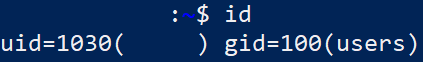 3. 로그인 상태가 [접속한 DSM ID@나스 서버 이름]인 상태에서 'id' 명령어를 입력합니다.